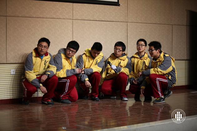 高2016届同学在场外聚精会神地为自己的表演做最后的准备