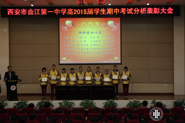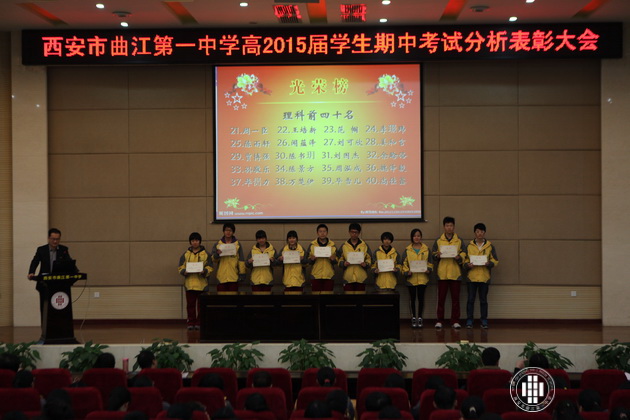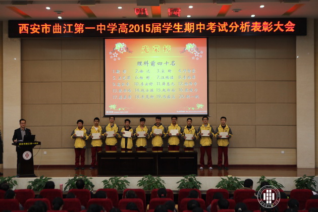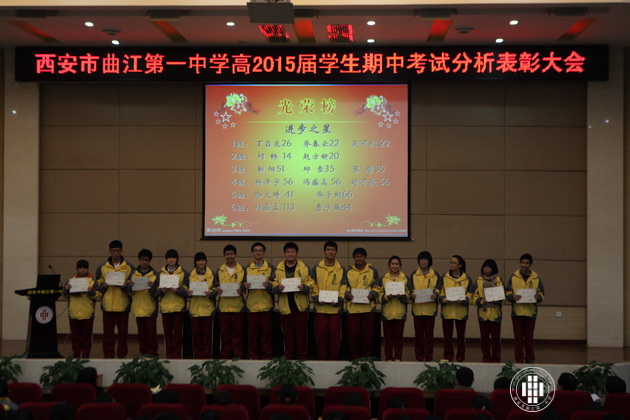 阳光明媚,银杏飞黄。11月15日,曲江一中高2015届学生召开期中考试分析表彰大会在校报告厅隆重举行。会议由年级组长董锋主持,高2015届全体师生参加。