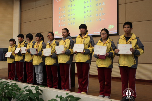 高2015届教师杨光辉等老师为优胜同学颁奖