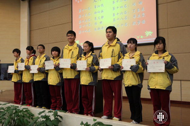 会议伊始,董锋老师回顾了开学至今的学习情况,对同学们克服困难、追求完美、人人比拼、个个争先的学习热情进行了高度赞赏和表扬。同时,在分析了本次考试所取得的成绩后,董锋老师宣布高二年级期中考试中的理科前四十名,文科前二十名,各科目单科优秀学生及进步之星,对以上同学所取得的成绩表示热烈祝贺,并对优秀学生进行了表彰。在振奋人心的乐曲声中,在全体师生热烈的掌声中,获得表彰的同学依次登上主席台,接受师生们热烈的掌声和诚挚的祝贺。