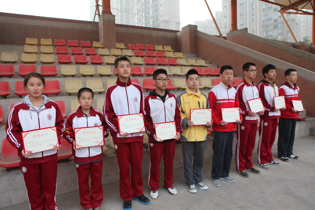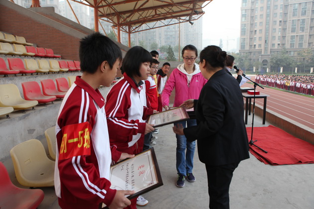 政教处主任余爱东为我校第二届跑操比赛获奖班级及优秀领操员颁发了奖状及荣誉证书
