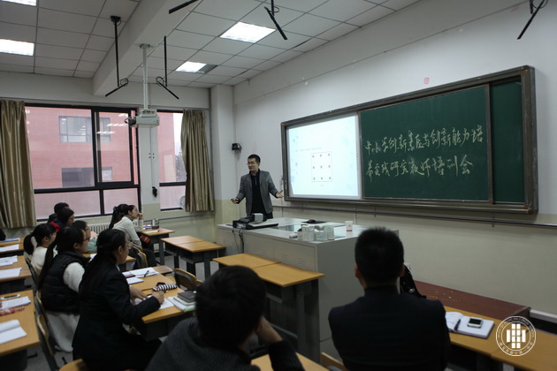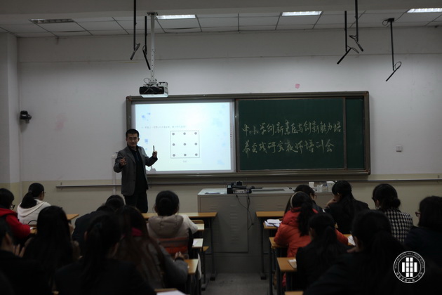 培训会在愉快放松的互动中拉开序幕。衣教授首先提到了创新素质对个人发展和社会发展的重要作用,然后分别从何为“创新素质”、“创新素质”能否培养、促进师生创新的因素以及教师的胜任力等方面进行了讲授。