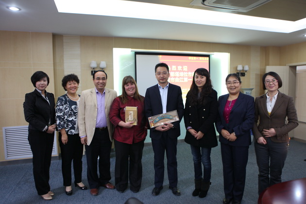 下午2点钟,我校常务副校长陈勇刚、副校长曹琦、校办兼政教主任余爱东、政教副主任刘瑜在会议室与来访的客人举行了座谈会。会上,澳大利亚首都堪培拉国际教育司司长Nicole King女士介绍了澳大利亚及堪培拉的教育概况,并对其欲与我校建立姐妹学校的卡罗琳•奇泽姆高中进行了介绍,该高中校长欲在2014年3月来访曲江一中,届时希望两校能够深入洽谈建立友好姐妹学校。常务副校长陈勇刚对Nicole King一行来访曲江一中表示热烈欢迎,曲江一中虽是一所年轻的学校,学校传统教育与国际化教育相结合的办学道路上却已初见成效,学校非常乐意能够与澳大利亚政府建立合作关系。