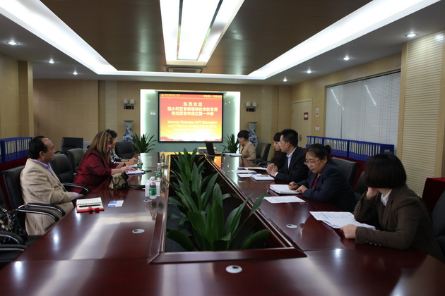 我校常务副校长陈勇刚、副校长曹琦、校办兼政教主任余爱东、政教副主任曹琦在会议室与来访的客人举行了座谈会