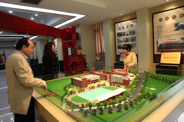 校办孙晓珍老师为来访客人介绍学校沙盘