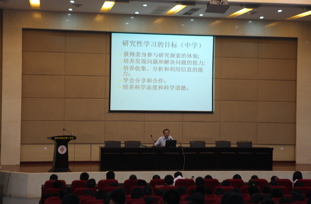 刘老师采用理论和案例相结合的方式,深入浅出地介绍了研究性学习的相关知识,从实际出发指导了本届研究性学习的开展。报告会上,高一年级全体师生认真聆听报告,仔细做笔记,一定会在今后的研究和学习中更好地结合自身实际取得优异成果。