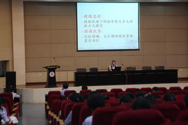 首先2012年度推荐优秀的小课题负责人分享了课题研究的整个过程。赵倩老师主要就《网络建构下的初中作文多元评改方式探究》初期、中期、结题以及经验与遗憾等方面分享交流。黄晨老师就《中学音乐中多媒体辅助教学有效性研究》的过程性资料进行了展示并作了反思。她们都将小课题研究成果在教学实践中的应用以课堂教学的方式呈现出来,使大家切实体会到小课题教研如何改变课堂教学,小课题研究如何推动课堂教学。