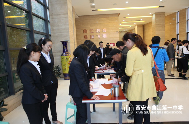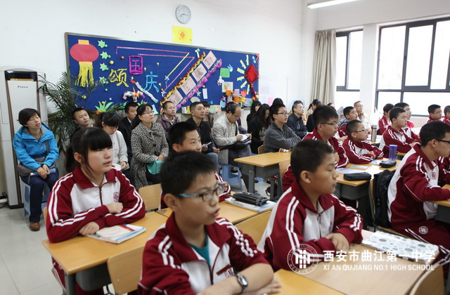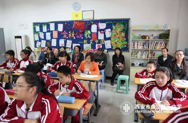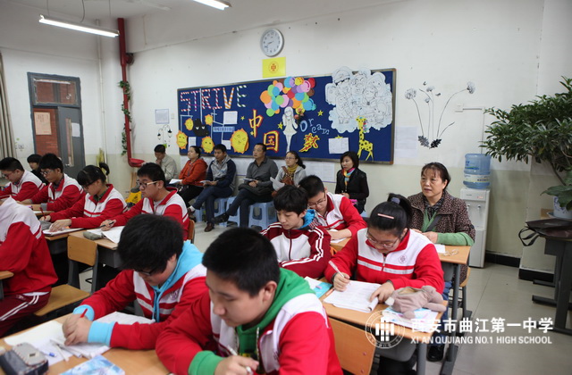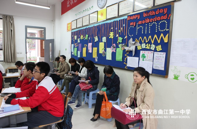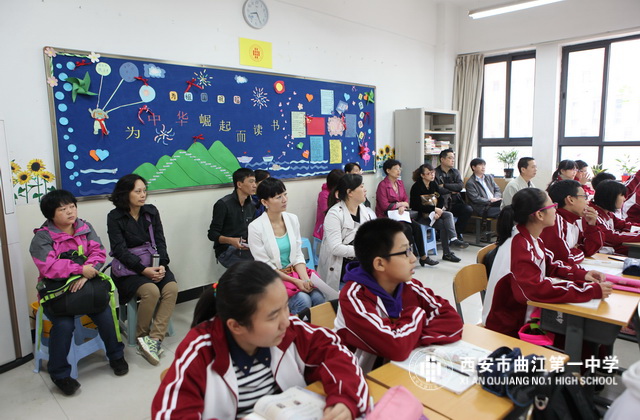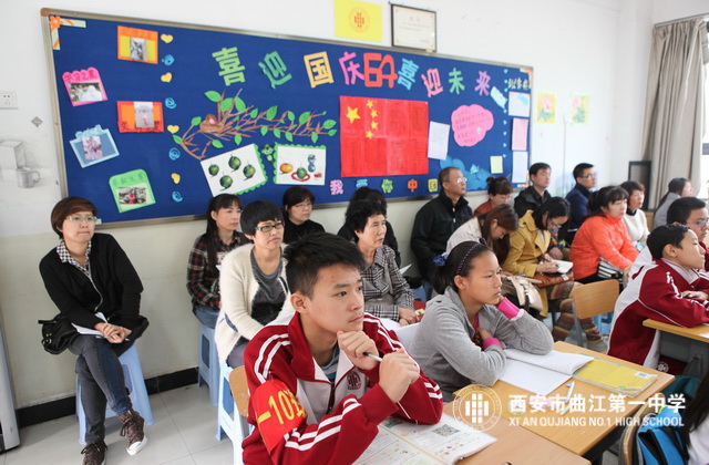 2013年10月17日,西安市曲江第一中学举办2013—2014学年第一学期家长开放日活动。学校邀请六个年级的部分家长深入课堂听课、评课,查看班风、班纪,对学校的管理、教学进行监督。