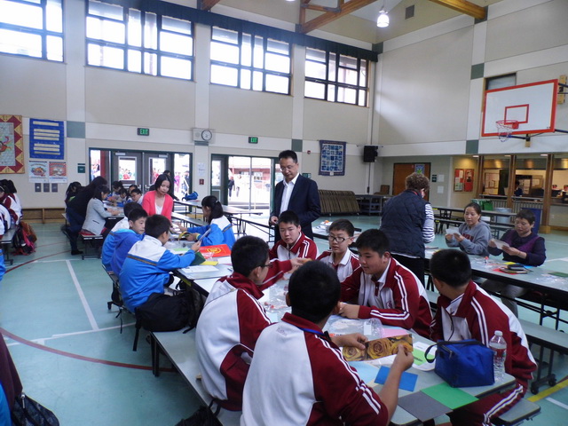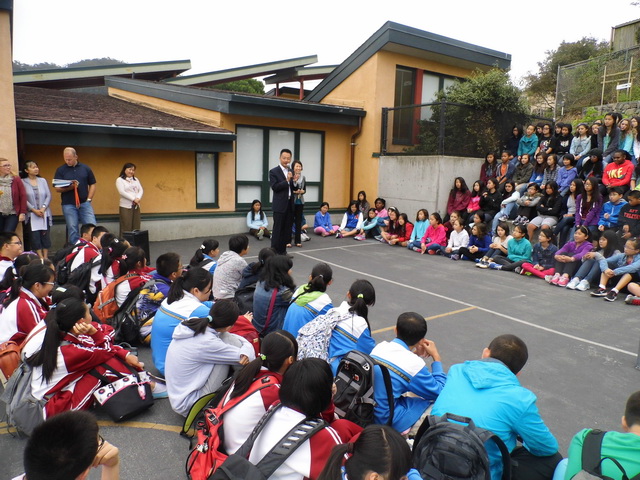 本次活动的核心是最后一周在旧金山尤方玉屏学校的修学活动。参加活动的四十位学生在这里度过了充实、精彩的一周。从走下大巴车热情的接待、丰盛的晚宴、到火热的欢迎舞会,同学们看到了不一样的表达方式,体会到的却是不变的友好热情。在欢迎晚宴上,司徒校长对我们的学生表示了热烈的欢迎。陈勇刚校长发表了流利的中英文双语致辞,热情洋溢的讲话激发了同学们学习英语的热情。