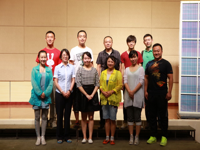 曲江一中政教处副主任刘瑜、体育教师项红与演员合影留念