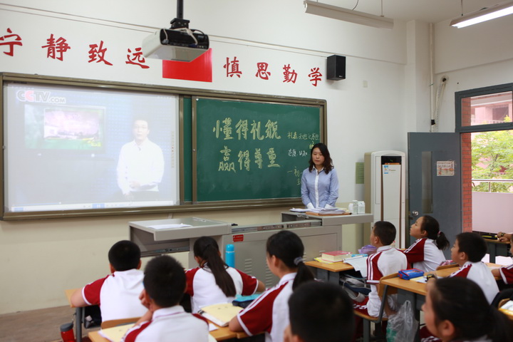 二:课堂礼仪:遵守课堂是学生最基本的礼貌。如:无特殊情况不得在老师开始上课后走进教室。应先得到老师允许,再走进教室。要认真听讲,独立思考。当老师提问时,应该先举手,发言时,身体要立正,态度要落落大方,声音要清晰响亮,并且使用普通话。下课后,待老师离开教室,学生方可离开。