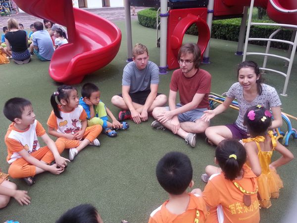 NSLI-Y学生们不仅在曲江一中学习汉语,感受中国文化,还积极参与各项志愿活动:他们去西安的幼儿园,和中国小朋友做游戏,教孩子们学习英语;他们去养老院,为中国老人唱歌,陪孤独的老人们聊天下棋,为他们派遣寂寞,带来欢乐。除此之外,NSLI-Y学生们还在每周五下午在中美双方教师的组织下参观西安的名胜古迹,体验丰富博大的中国传统文化。