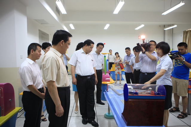 董军市长一行首先参观了我校校展室,听取了李元主任汇报的曲江新区教育资源配置及建设情况,李元主任介绍到,曲江新区作为国家级文化产业示范园区、国家5A级旅游景区、国家级文化和科技融合示范基地、西安市“五区一港两基地”的重要组成部分和西安建设国际化大都市的主功能区,历来高度重视教育事业,始终把教育资源的配置与建设列为全区重点工作,实行科学规划、超前配置、优先发展,较好地满足了区内户籍居民子女的入学需求。随后我校校长边团结介绍了我校的基本概况及2013届毕业生高考取得的优异成绩。随后董市长一行参观了我校实验楼,我校教师演示了各类教学仪器,并为领导们讲解仪器的功能及在实际教学中的应用。