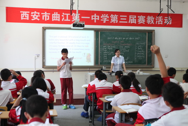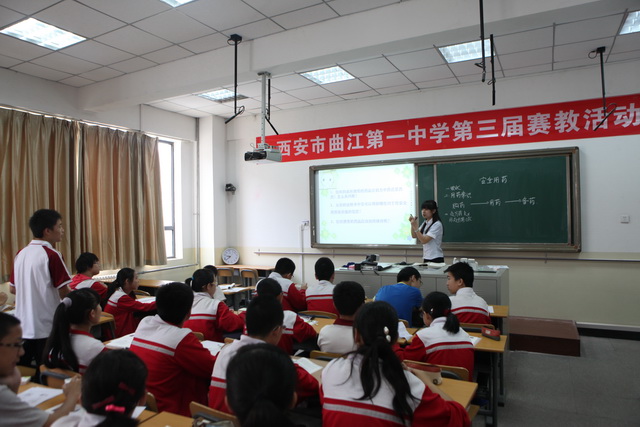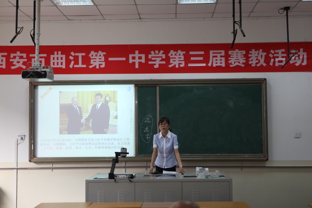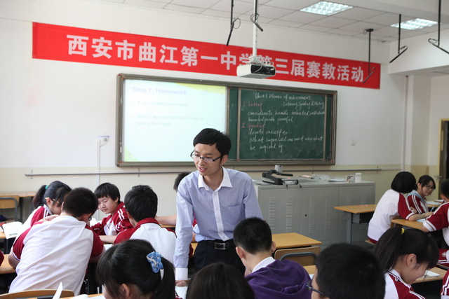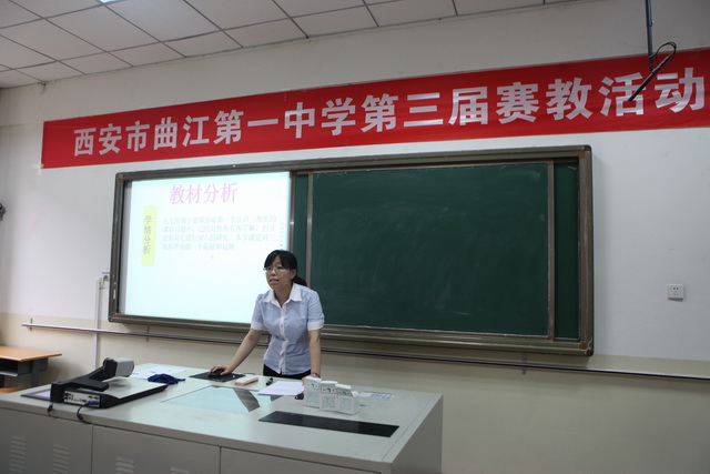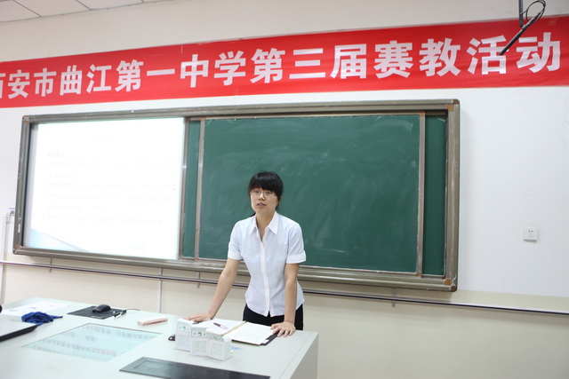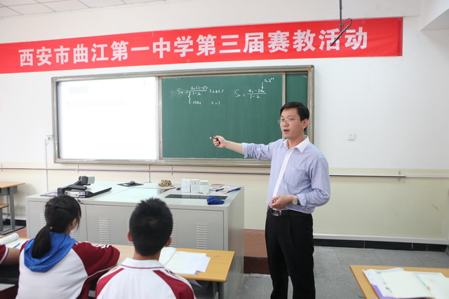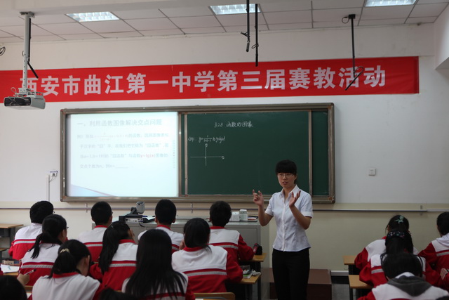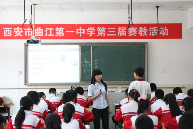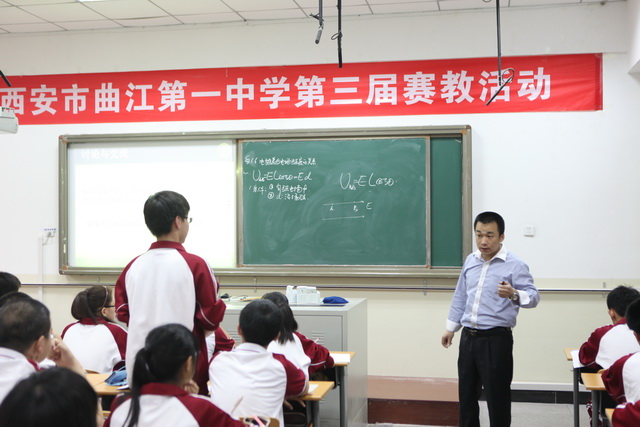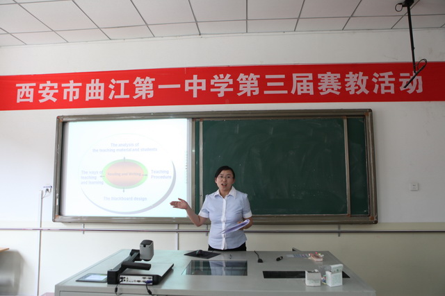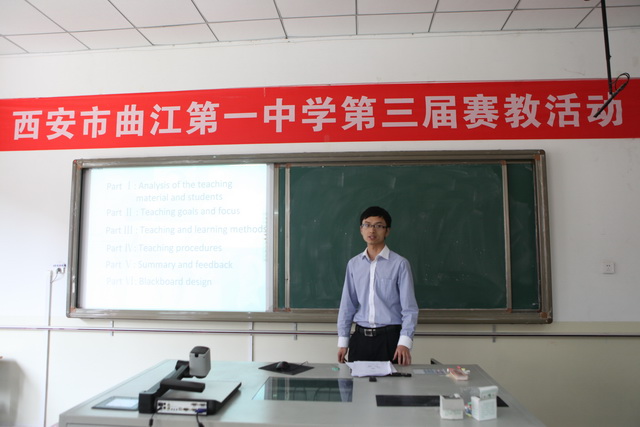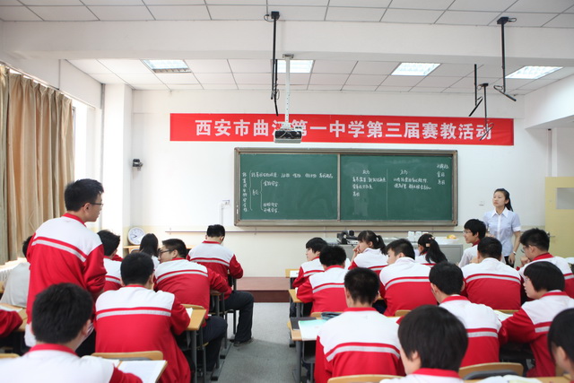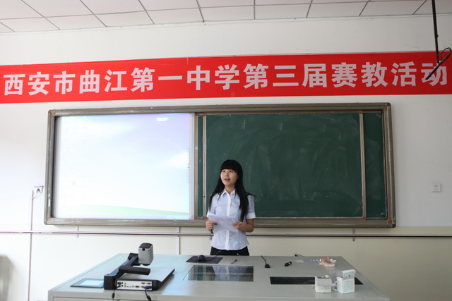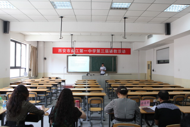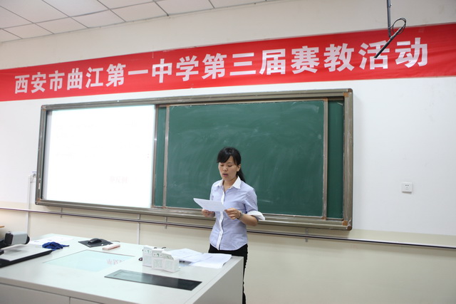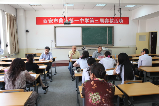 2013年5月20日至23日,我校在直录教室举行了第三届赛教活动。我校语、数、英等12门学科26位教师分别参加了比赛,本次赛教活动特邀陕师大附中工会主席兼政教处主任邓小鹰及各学科带头人担任评委,我校常务副校长陈勇刚、副校长曹琦、学校办公室兼政教处主任余爱东、教务处兼招生办主任朱琳瑛、教务处兼高2013届年级组长高秋棉、教研室兼高2015届年级组长刘公潜、各年级组长、各教研组长及各学科教师观摩了这次比赛。