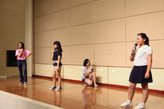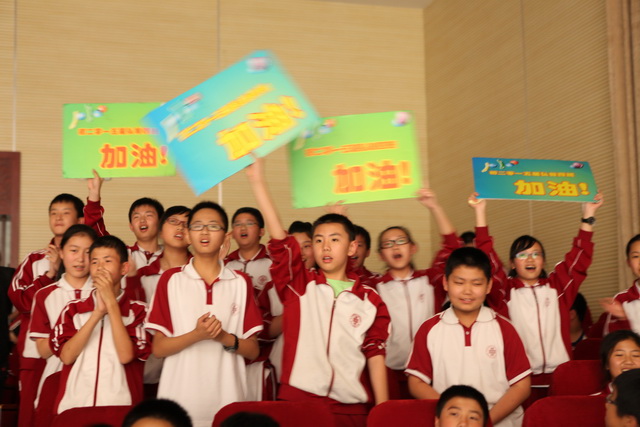 比赛由初一七班的王碧萱、武怡璠、李泳怡等同学一首《串烧》拉开序幕,她们愉悦的歌声、甜美的笑容,迅速点燃了现场的气氛。接着初一五班的《那些年》,初一三班的《串烧》,和初二四班《红日》等等歌曲纷纷登台亮相,台上时而悠扬深情,时而活力四射,台下时而侧耳倾听,时而掌声雷动,现场气氛节节升温。