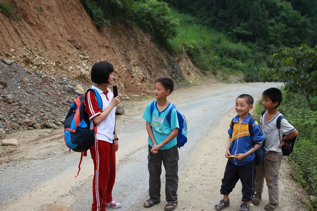 本次活动初中组特约小记者李金录同学采访漩涡小学每天徒步两个多小时回家的五年级同学