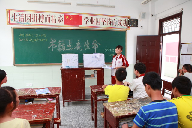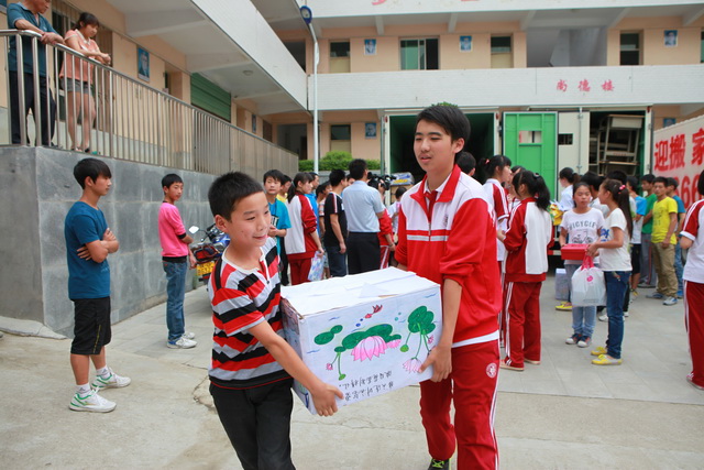 我校高2014届同学向漩涡中学八年级七班同学赠送班级书箱