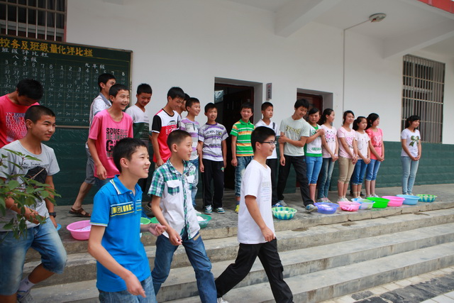 漩涡中学同学用一种特别纯朴的方式迎接曲江一中结对同学