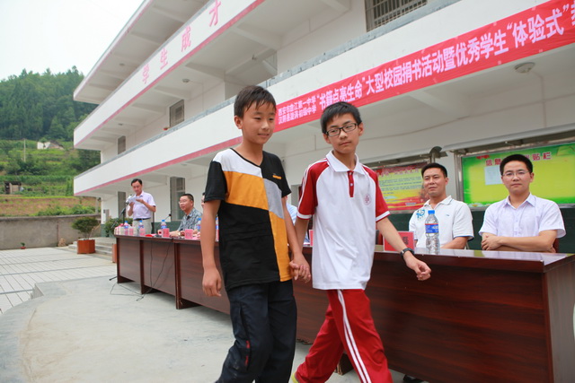 最后,漩涡中学副校长付刚宣读了两校结对学生名单,我校33名同学纷纷走上主席台向结对同学赠送了小礼物。