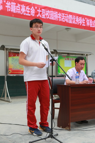 曲江一中学生会主席王宇飞代表曲江一中同学宣读《给漩涡中学师生的一封信》