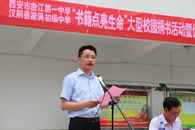 曲江一中、漩涡中学“书籍点亮生命”大型校园捐书活动暨“体验式”教育交流启动仪式在汉阴县漩涡中学如期举行