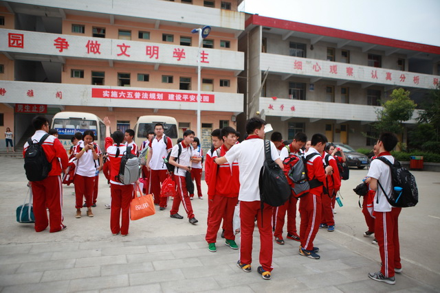 曲江一中同学经过7个小时的车程到达汉阴县漩涡中学