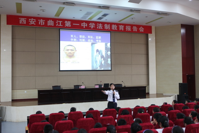 5月8日14时,我校政教处特邀陕西省未成年犯管教所纪委书记、三级警监翟学荣在报告厅举行了以“预防和控制青少年犯罪”为主题的大型法制教育报告会。学校办公室兼政教处主任余爱东、初2014届年级组长陈金叶及全体师生出席报告会。