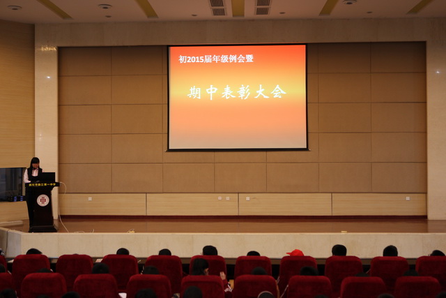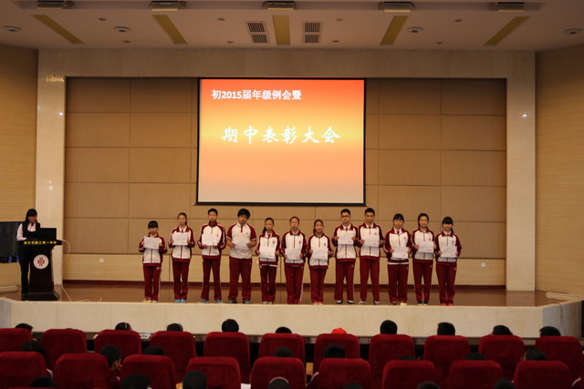 会议由初2015届组长张洁老师主持。她深情回顾了全体学生两个月以来的所取得的成绩和进步,充分肯定了运动会上的拼搏和团体协作精神,对前半学期表现优秀的班级、个人进行了表彰。