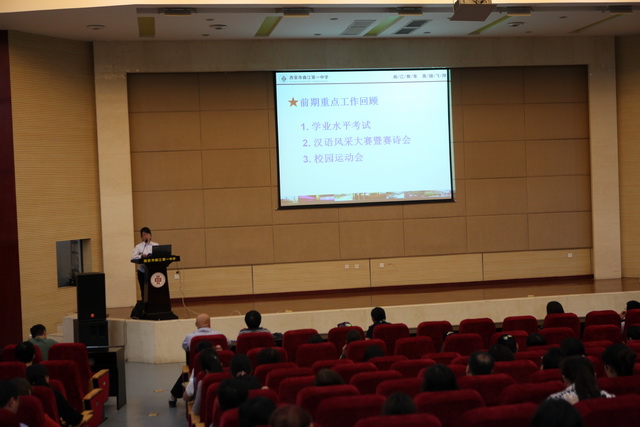 2013年5月11日15时30分,高2014届在报告厅成功召开了全体学生家长会暨学生月例会。在高2014届年级组长彭鸿莹老师主持下本次会议分两场依次顺利进行。