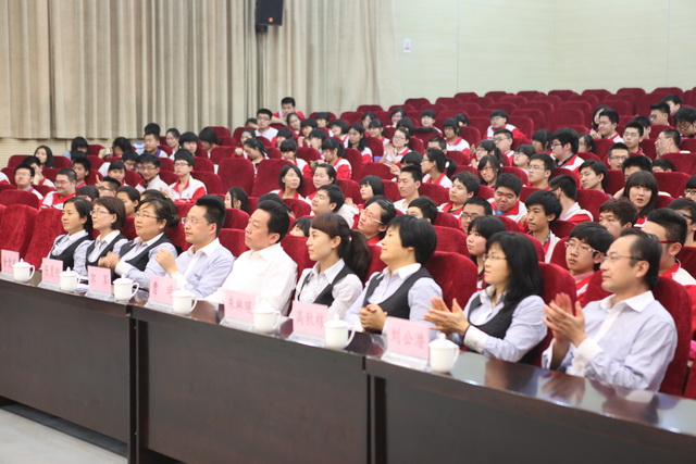 典礼以“感恩成长,放飞梦想”为主题,在充满活力的音乐声中,大屏幕上的电子相册循环播放着同学们三年以来的高中生活的精彩片段。报告厅内洋溢着相聚分离、体悟感恩、励志拼搏的气氛,感人至深。