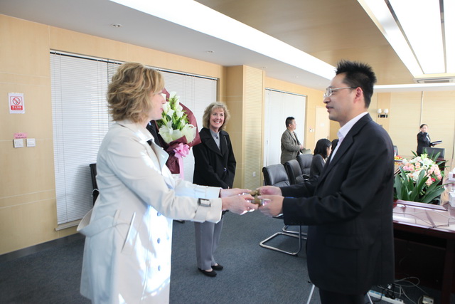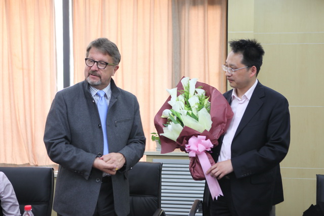 加拿大西蒙弗雷泽大学Robert向曲江一中赠送鲜花
