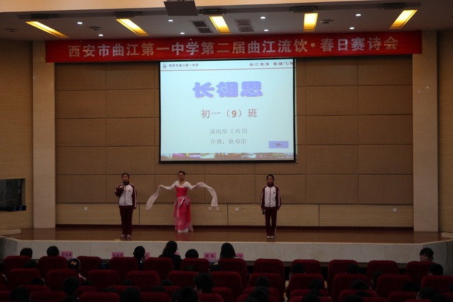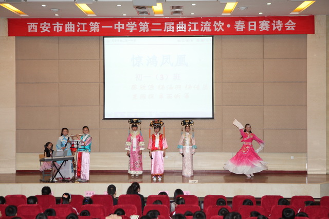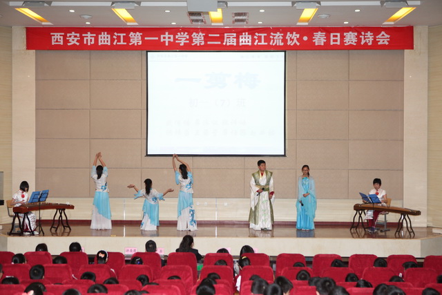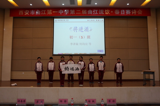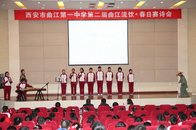 终南悠悠,雁塔相伴,朗朗诗声,款款古乐。4月10日16时,曲江一中第二届曲江流饮·春日诗会初2015届A组赛在报告厅圆满举行。