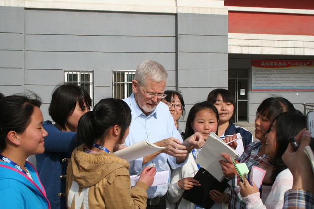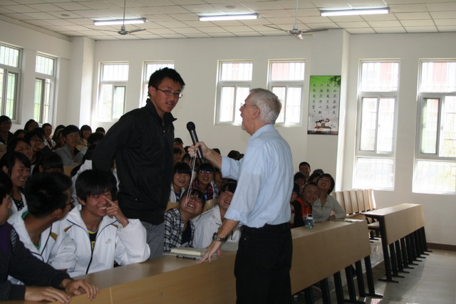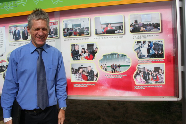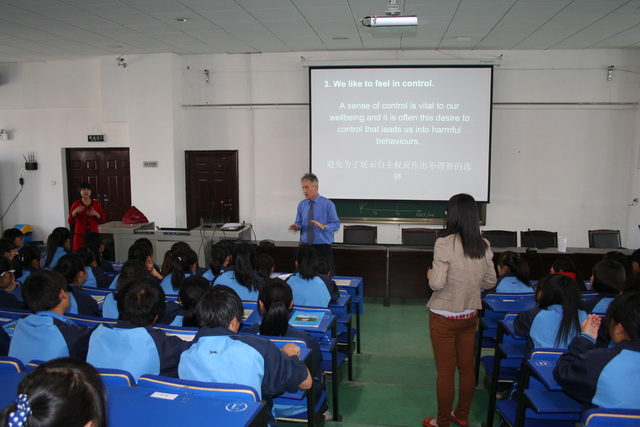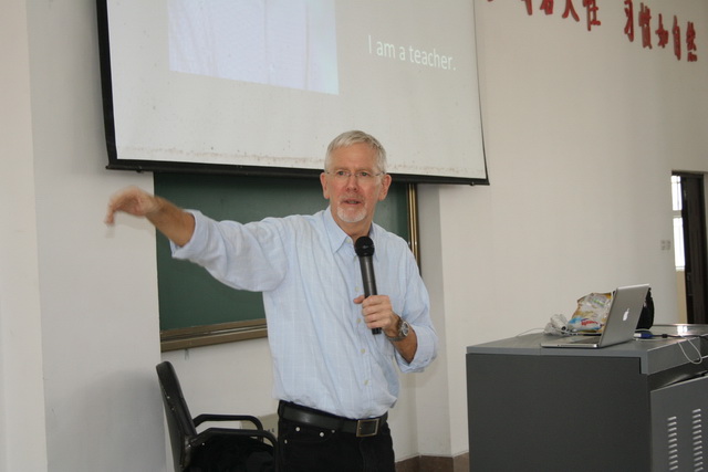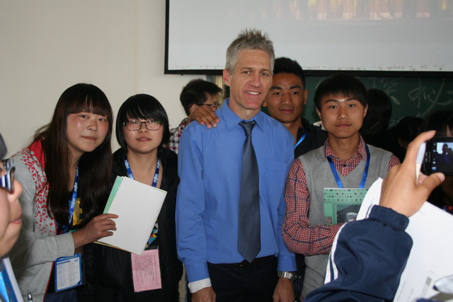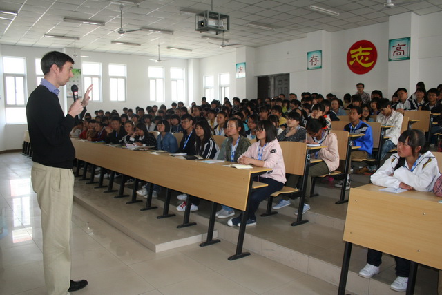 香港汉基学校外籍教师GLEN MORGAN(莫艮年)为宁强县天津高级中学同学上历史课