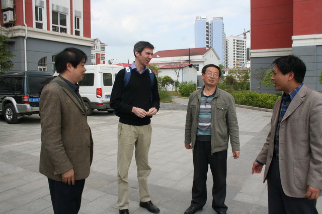 宁强县天津高级中学副校长张洪金与邓小鹰、余爱东主任就支教活动进行交流