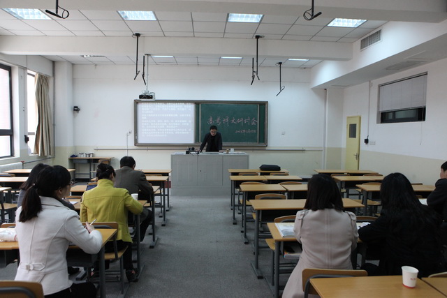 会议的第一项是由高三语文老师的代表乔亚龙老师汇报本年级的备考工作及冲刺阶段的复习计划。乔老师首先对今年的考纲进行了解读,之后根据近三年的高考试卷按题型进行分析,并提出了相应的复习对策,最后根据年级学生的具体情况提出了高考冲刺阶段的复习计划和方法,重点突出,详细实用。