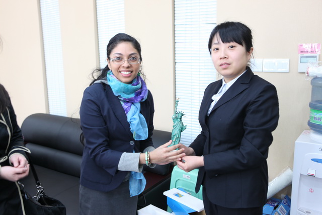 12点,两国学生在我校餐厅共进午餐,互赠礼物,互相留影,互道友别,共同期待着下一次还有机会再交流。