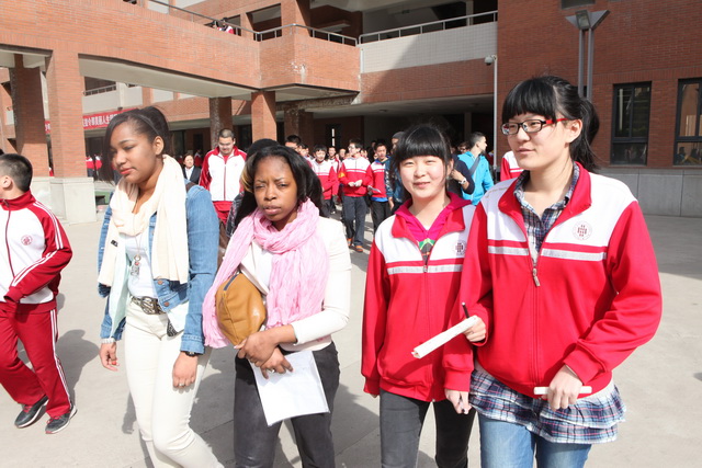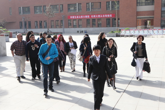3月27日早上9时,纽约合作高中(Global Learning Collaborative)师生代表团一行17人来我校参观交流。学校教务主任兼招办主任朱琳瑛在学校接待室与远道而来的美国高中师生进行了亲切的座谈。朱主任首先对各位师生的到来了表示热烈的欢迎,并简单介绍了我校的办学历史和学校特色。随后,代表团一行在我校高2015届、高2014届部分学生的带领下参观了校园,并饶有兴致地参与了学生课间跑步。