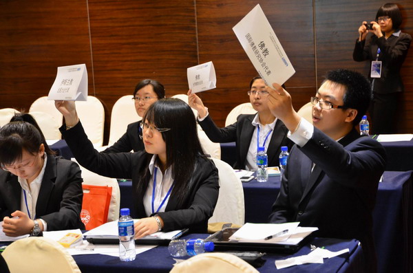 我校模联社团的惠泽、梁思雨、葛文静、张嘉欣、彭格格、田苗等6名同学分别以阿盟代表、伊拉克、危地马拉、叙利亚、佛教联谊会代表及世界和平组织驻会代表的身份参与了此次大会,在四天多的紧张会议中,我校模联学子与全国各地著名中学的模联精英们一起积极磋商,深入讨论,撰写解决方案,极大地提升了我校模联学生作为地球人的国际责任感和人文关怀精神,促进了领导才能、沟通交流能力与学术研究能力的提高。