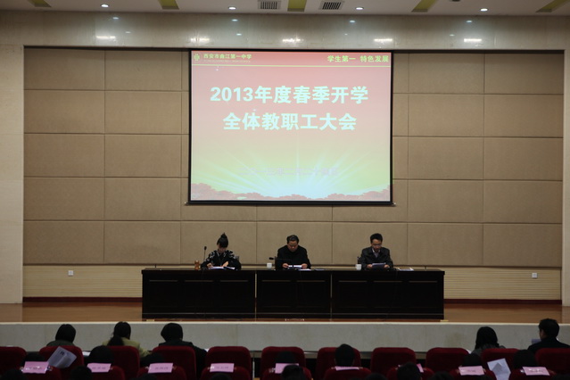 会上,陈勇刚常务副校长首先宣读了本学期教学教研工作及德育工作的重点工作及常规工作。之后,曹琦副校长就行政及后勤两部门本学期的重点工作及常规工作做了汇报。会议最后,边校长作了重要讲话, 他要求全体教职工要全心全意为学校的发展贡献力量,树立学校良好的社会形象,建立更好的社会声誉,让曲江一中成为家长和学生向往的名校。为此我们必须苦练内功,坚持内涵发展,科学发展,特色发展,通过多种成绩来不断提升我校在全省的地位,让每一位教职工都能体验到成功的喜悦,享受职场幸福。我们要以认真负责的精神,以主人翁的意识,团结一心,同舟共济,努力实现学校的阶段性目标。