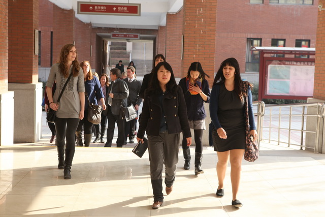 加拿大西蒙弗雷泽大学实习教师一行18人参观我校教学楼