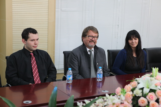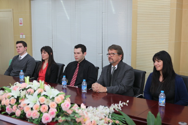 加拿大西蒙弗雷泽大学带队老师Robert聆听朱主任介绍我校基本概况