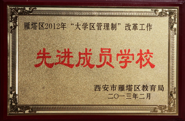 曲江一中荣获雁塔区2012年“大学区管理制”改革工作先进成员学校