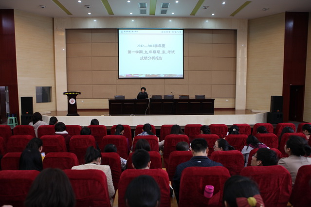 2013年3月6日下午,我校分别在报告厅、录课教室召开了2012—2013学年度第一学期初中部、高中部期末考试成绩分析会,全体教师参加了此次成绩分析会。