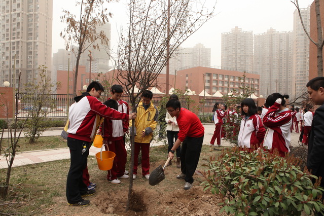 阳春三月,草木秀润。为进一步提高学生的绿化意识和文明素质,打造绿色学习环境,构建和谐文化校园。我校于3月12日中午12:30组织初一、高一年级在学校报告厅西侧开展植树活动。