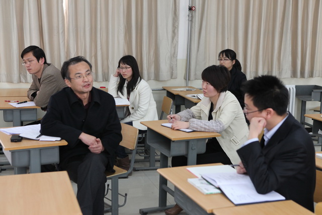 2013年3月13日下午,曲江一中数学教研组本学期教学工作会议在A教410教室举行。教研室副主任刘公潜、数学组组长魏巍及数学组全体教师参加了本次会议,会议由魏巍主持。会议主要就本学期的常规教学工作、教研工作以及青年教师培养工作做精心的布置与严格的要求。