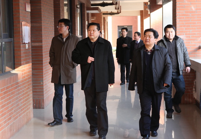 2013年1月24日下午,渭南市教育局局长党福奎、经济技术开发区党工委副书记王小平一行4人对我校考察交流。我校校长边团结、常务副校长陈勇刚、副校长曹琦热情接待了党局长一行。