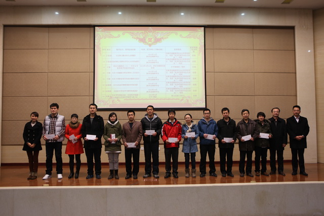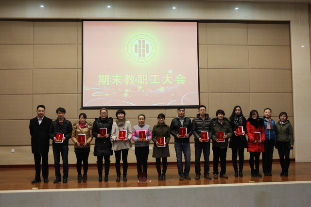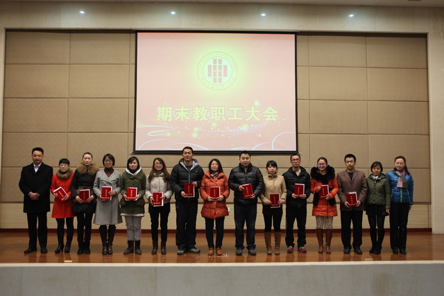 会议由常务副校长陈勇刚主持,首先, 副校长曹琦宣布了表彰决定,白国强、白璇、崔敏、丁慧芸等46位老师荣获本学年年度考核优秀教职工奖;大会第二项是对本学年在国内外期刊上发表论文的老师的表彰仪式,由教务主任朱琳瑛宣读了获奖教师名单,杜培蓓、何岩、黄晨、李慧等老师代表上台领奖。最后,政教处主任余爱东宣读了初中主题班会赛教获奖名单,并对苏岳老师在 “首届全国中小学班会课专题研修现场会”的良好表现进行了表扬。