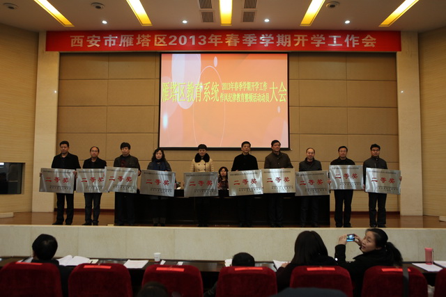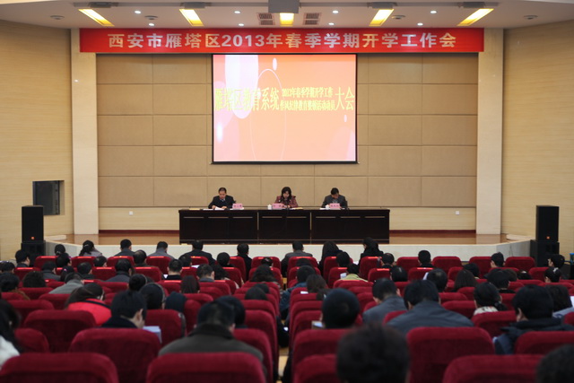 2月21日上午,雁塔区教育系统2013年春季学期开学工作与作风纪律教育整顿活动动员大会在我校召开,参加此次大会的有区教育局局长孙娥、区教育局党委书记张水利、区教育局副局长徐三雄及区各中小学、幼儿园的校长、园长及负责人,大会由区教育局党委书记张水利主持。
