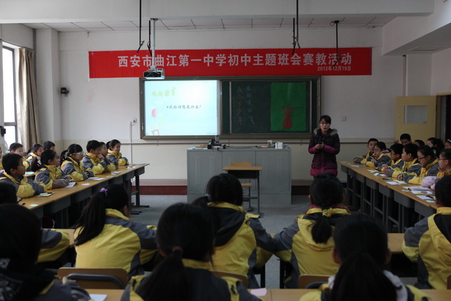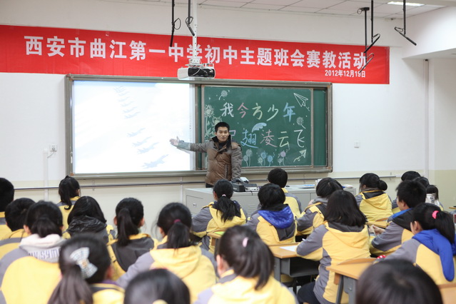 2012年12月19日,我校在初中各年级举行了题为“我今方少年,展翅凌云飞”的主题班会赛教活动,七、八、九年级分别推选了两位班主任老师参与本次赛教活动。本次活动特别邀请副校长曹琦、校办兼政教处主任余爱东、政教处副主任兼九年级年级组长刘瑜、八年级组长陈金叶及七年级组长张洁担任评委。