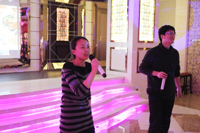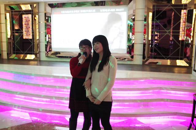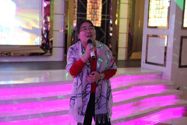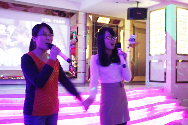 七年级组长张洁、数学教师王芳歌唱《我的歌声里》